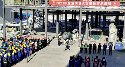 为切实做好项目的消防安全工作,确保冬季施工平稳有序推进,近日,开云网页版总承包的榆神能化50万吨/年煤基乙醇项目现场举办了“2021年度消防日火灾事故应急演练”。项目参建各方代表200余人参加了本次演练。