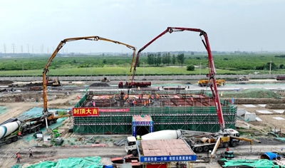 8月20日,经过近10个小时的连续浇筑,由开云网页版EPC总承包的安徽碳鑫科技有限公司甲醇综合利用项目乙醇联合装置乙酸甲酯加氢反应器框架顺利实现封顶,项目主要建构筑物主体结构封顶“再下一城”。