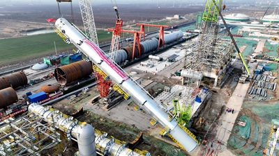 全球最大规模安徽碳鑫60万吨/年煤基乙醇项目超百吨大塔顺利吊装