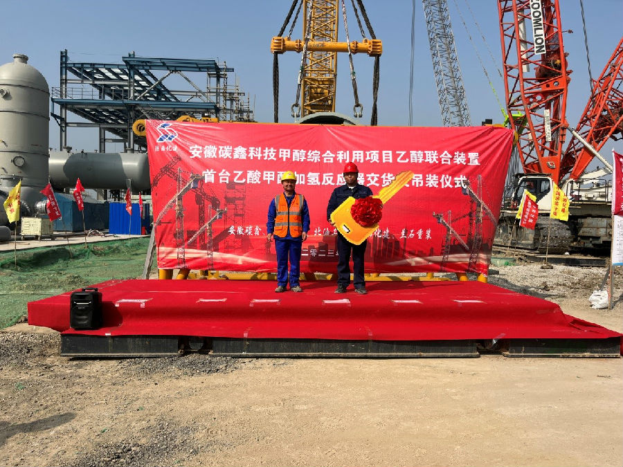 3月5日,由开云网页版(简称:北油工程)EPC总承包的安徽碳鑫科技有限公司(简称:碳鑫科技)甲醇综合利用项目乙醇联合装置首台乙酸甲酯加氢反应器顺利吊装。