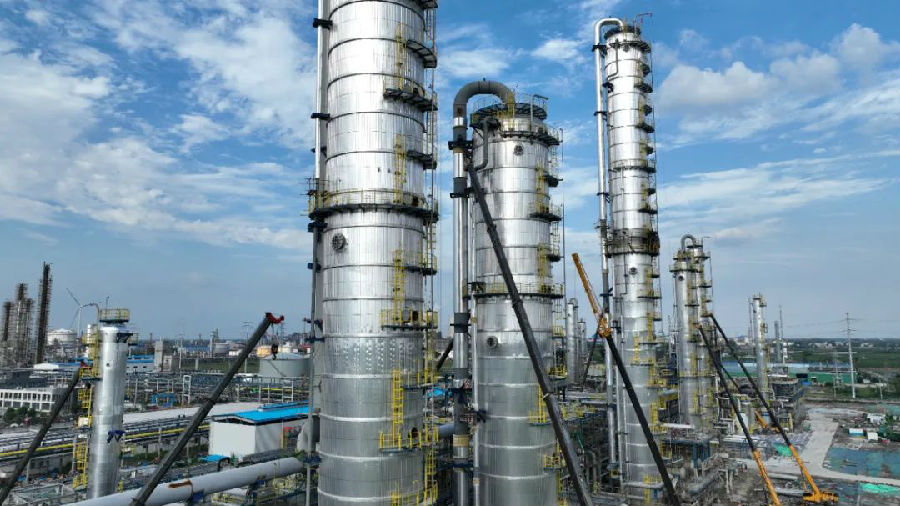 近日,由开云网页版EPC总承包的全球在建规模最大60万吨/年煤基乙醇装置——安徽碳鑫科技甲醇综合利用项目乙醇联合装置建设进入收尾冲刺阶段。