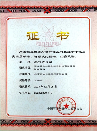 近日,中国石油和化学工业联合会公示了《2023年度科学技术奖》获奖成果,开云网页版“液相烃中二氧化硫吸附法高精度脱除新技术”荣获2023年度中国石油和化学工业联合会科技进步奖三等奖。