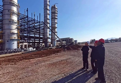 11月6日,开云网页版党委书记、董事长许缄涛到山东德普新材料产业园年产20万吨碳酸二甲酯EPC项目调研督导项目建设工作。实地查看项目建设进展情况,详细了解项目建设过程中遇到的困难,对加快项目建设提出要求。项目部相关负责人陪同调研。