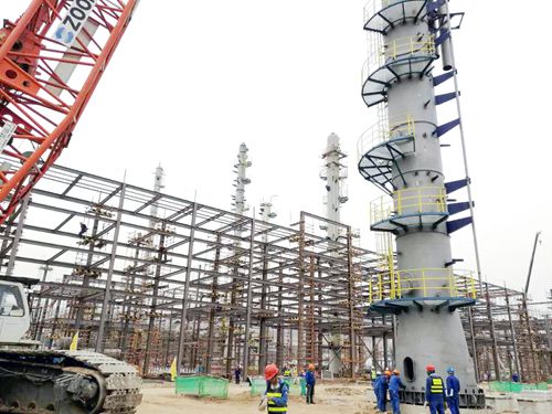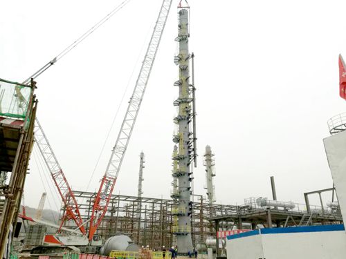 据悉,C-311全称碱洗/水洗塔,高62.91m,重104.5吨。该设备为工艺设备中较为核心的设备之一,在整体生产过程主要起到酸性气体脱除功能。ACO项目自2016年5月12日开工以来,克服了场地沉降、转化器订货决策、E-102订货决策、原料变更决策(影响汽油加氢单元设计进程)、环评变更决策(增加脱硫系统)等因素,同时,较其他工艺装置晚开工3-6个月,造成一定程度的设计、采购滞后。面对困难,ACO项目组迎难而上,于2016年12月底前实现了土建整体纠偏的总体控制目标,为2017年进入安装年创造较好条件。